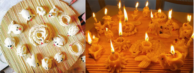較有特色的是一種面燈,蒸大包子時(shí)專門蒸制的,徐州一帶,面燈最負(fù)盛名.多蒸成十二種屬相或標(biāo)志十二個(gè)月的面燈.里面放些豆油(香油更佳),另用新棉花做燈捻(芯),晚間點(diǎn)燃后,每個(gè)房間都會(huì)放一盞,老年人會(huì)端著面燈,照遍里里外外,寓意對(duì)新的一年美好的祈愿。節(jié)日的晚上,兒童多持(或拉著)帶音樂的玩偶燈、紙燈、面燈游玩;遠(yuǎn)觀煞是好看;油燃盡后,面燈也烤得黃黃的,食來(lái)脆香可口。