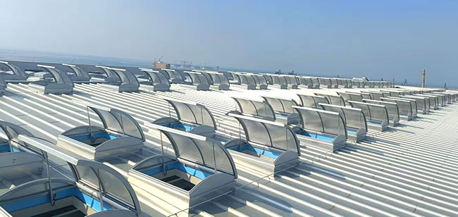 圓拱形的設(shè)計(jì),外觀(guān)優(yōu)美、通風(fēng)排煙兼顧自然采光,開(kāi)啟角度一般為30度到45度***開(kāi)啟角度為90°。