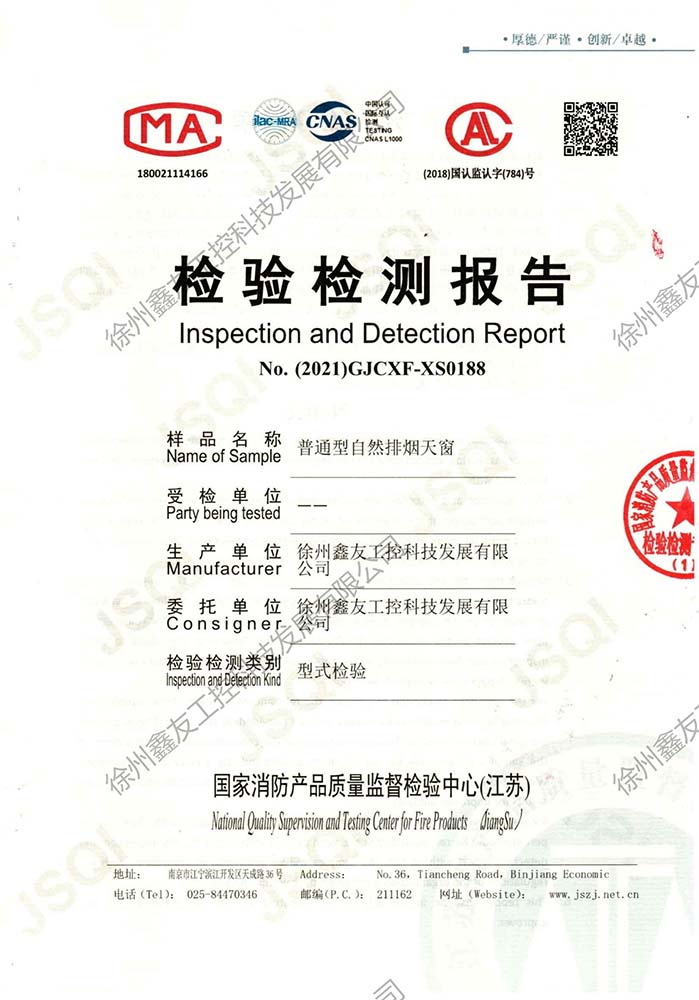 普通型電動(dòng)排煙天窗檢測(cè)報(bào)告188