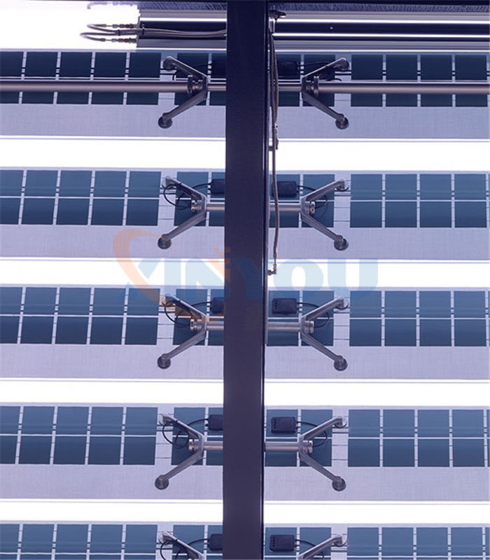 光伏百葉,能夠有效的將太陽能轉化為電能、動能,同時百葉滿足日常的采光、遮陽這樣功能。光伏百葉環境控制單元可以預置對風、雨、光、溫、煙等感應參數,使之通過外置感應器,對超限值作出及時回應進而控制百葉動作,完全實現了綠色環保節能的建筑理念。