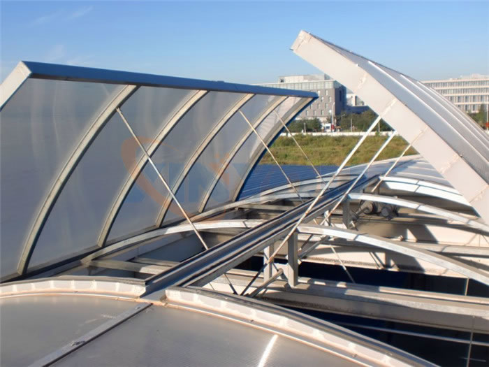 ◆ Arched Skylight is applied to thebuildings, used for mainly ventilation. The maximum opening angle is 45°.
